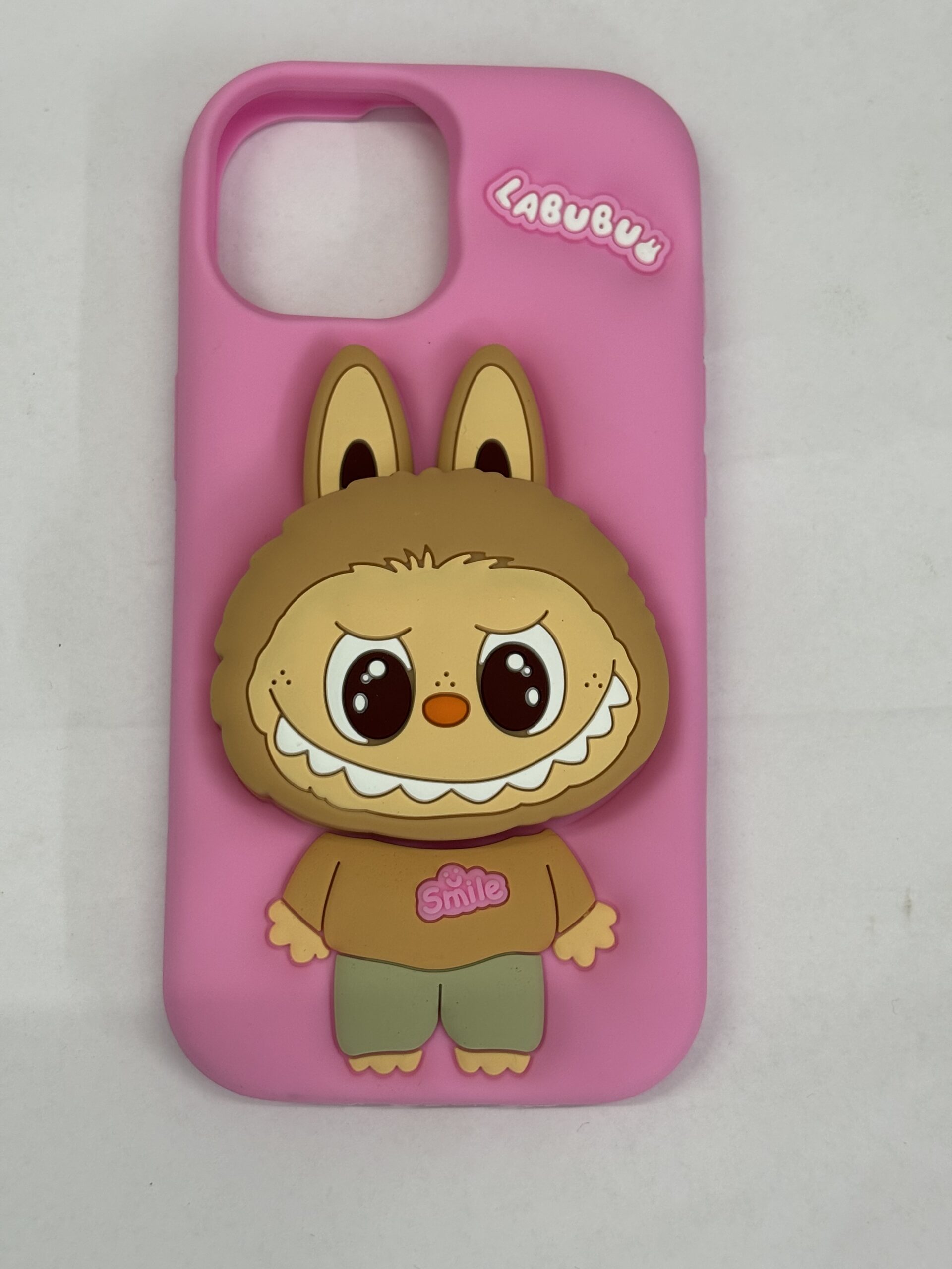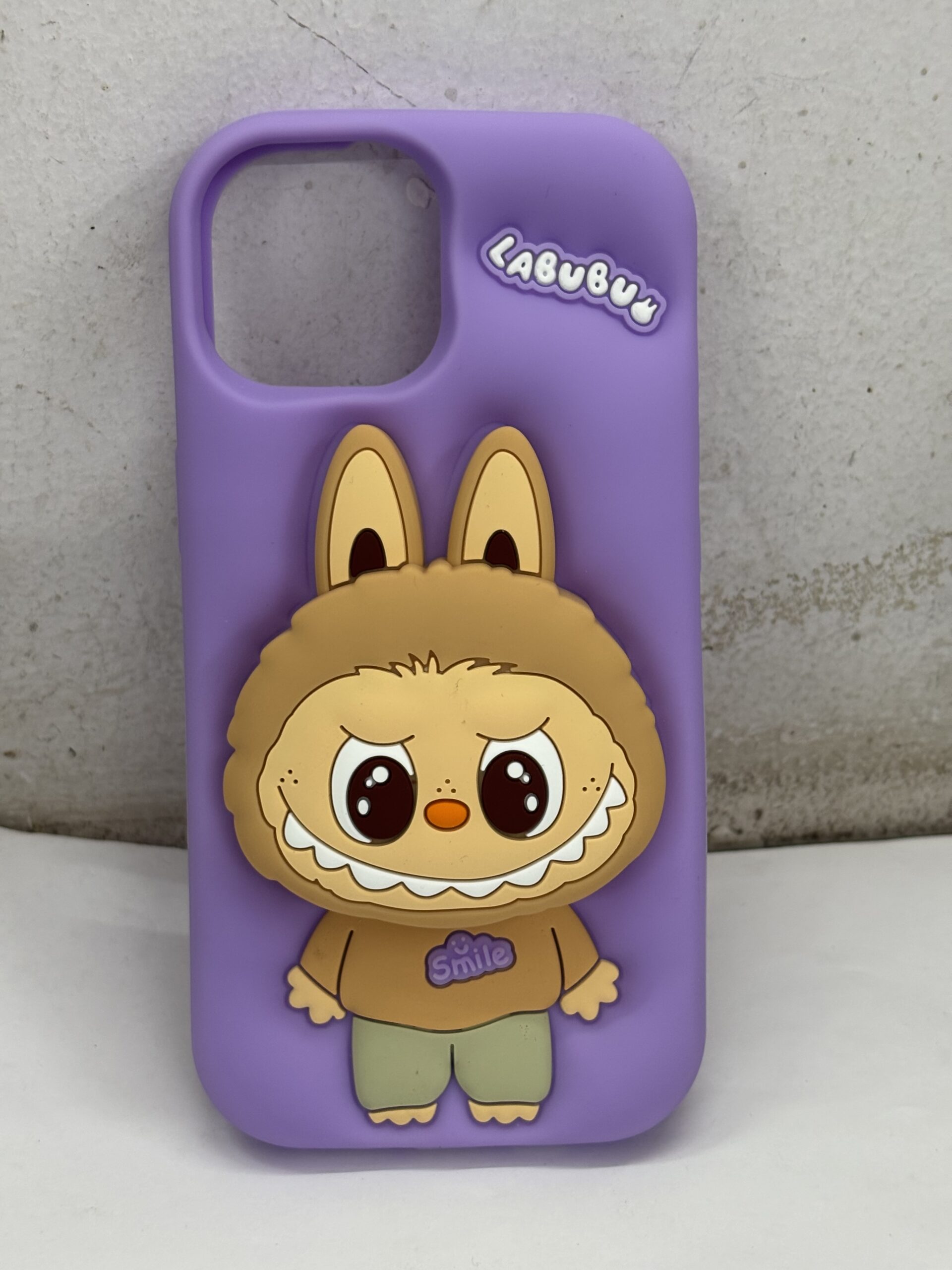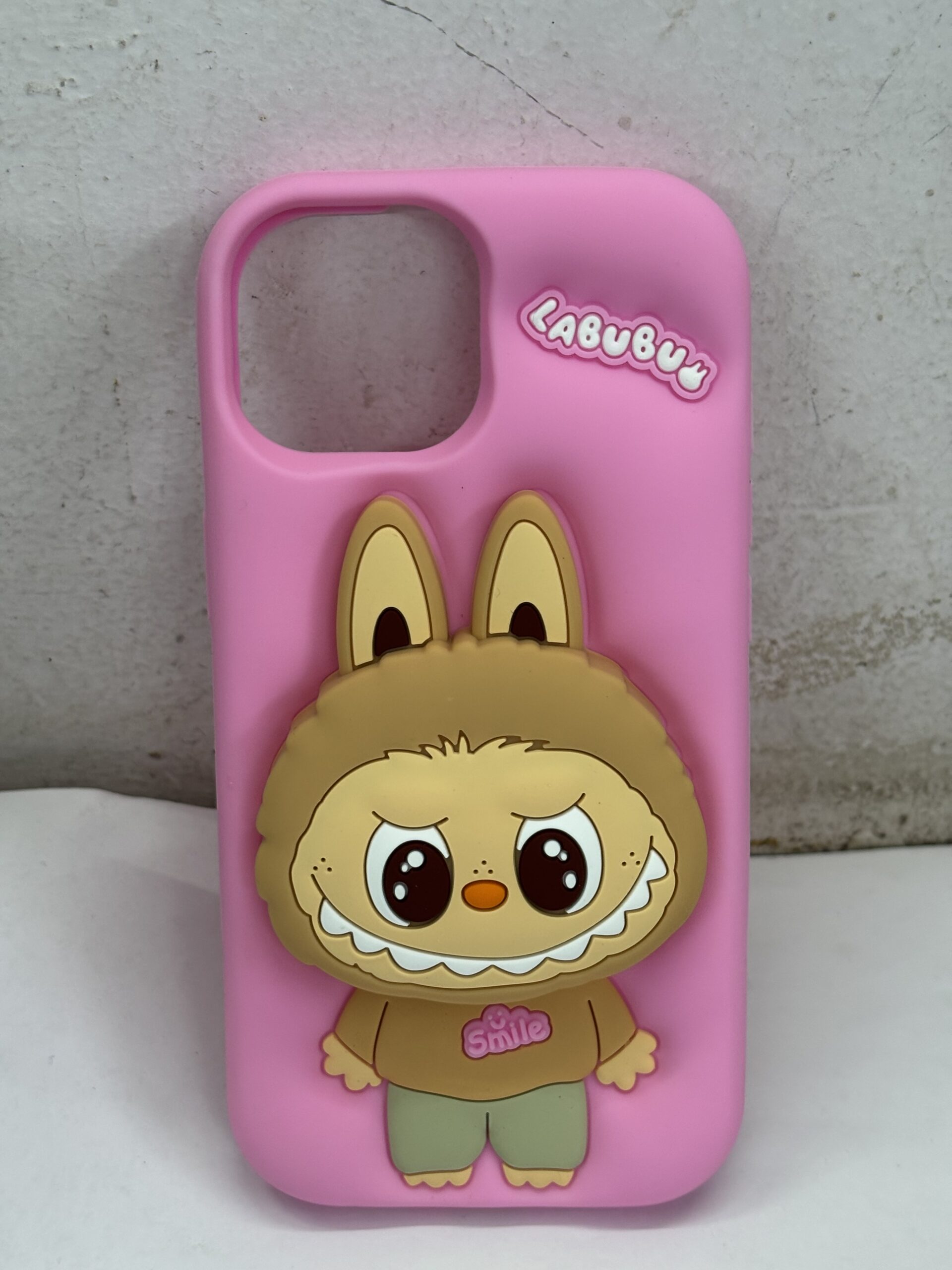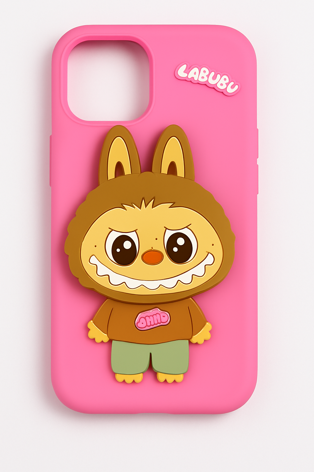 Adorable 3D Labubu cartoon case made of soft silicone, offering full shock protection with a playful and cute design. Perfect for kids, teens, and anyone who loves kawaii style.
